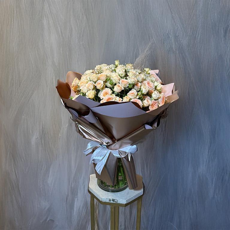 Imagine the delight as they unwrap a softly hued bouquet, the cream spray roses and airy baby’s breath framed in elegant Korean paper. Perfect for birthdays, thank-yous, or just because, it instantly lifts the room and says you’re thinking of them—beautifully and sincerely.