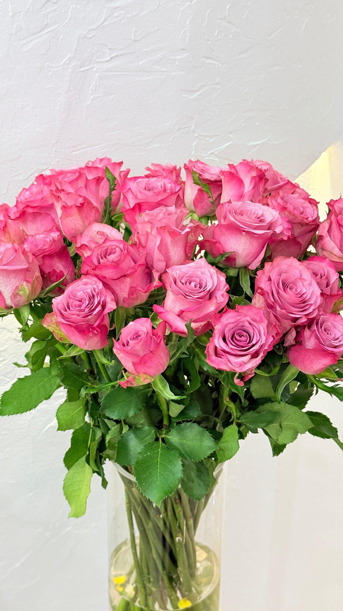 Fresh flowers hand-arranged in a glass vase for a clean, elegant look.